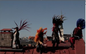 Nagu Naine Oleks Kodus (kuhu kuuluvad ka kuraatorid Katrin Essenson ja Liina Keevallik). Kaader Erna Keevalliku tummfilmist “Ajaraisk”.